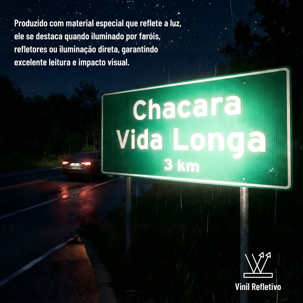 alta visibilidade, especialmente em ambientes com pouca luz ou durante a noite. Produzido com material especial que reflete a luz, ele se destaca quando iluminado por faróis, refletores ou iluminação direta, garantindo excelente leitura e impacto visual.